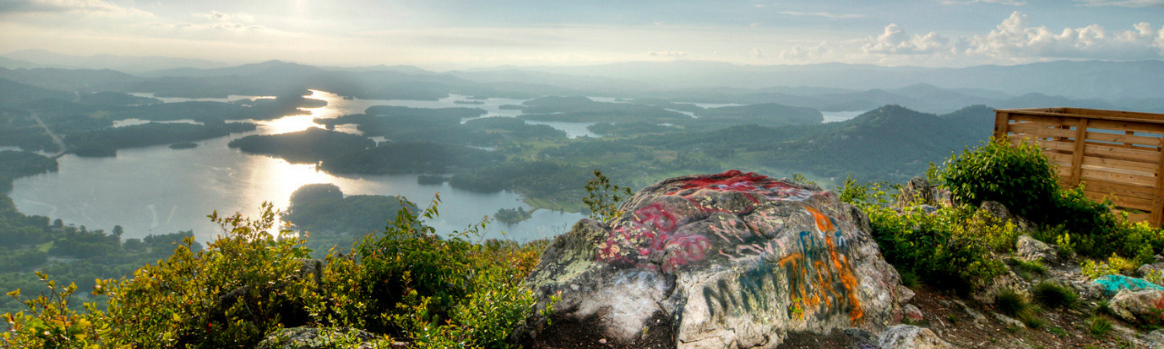 Hiawassee is a city in Towns County, located on the northern border of Georgia with North Carolina. The people of Hiawassee and the visitors alike love their Lake Chatuge, and when you experience this beautiful lake, you will too. This sprawling lake undoubtedly has some of the most spectacular views in these North Georgia mountains. Pristine, blue green water surrounded on all sides by tall undulating mountains. You’ll marvel at the Earth’s ability to rise so high and sink so low so quickly, and stay intact.